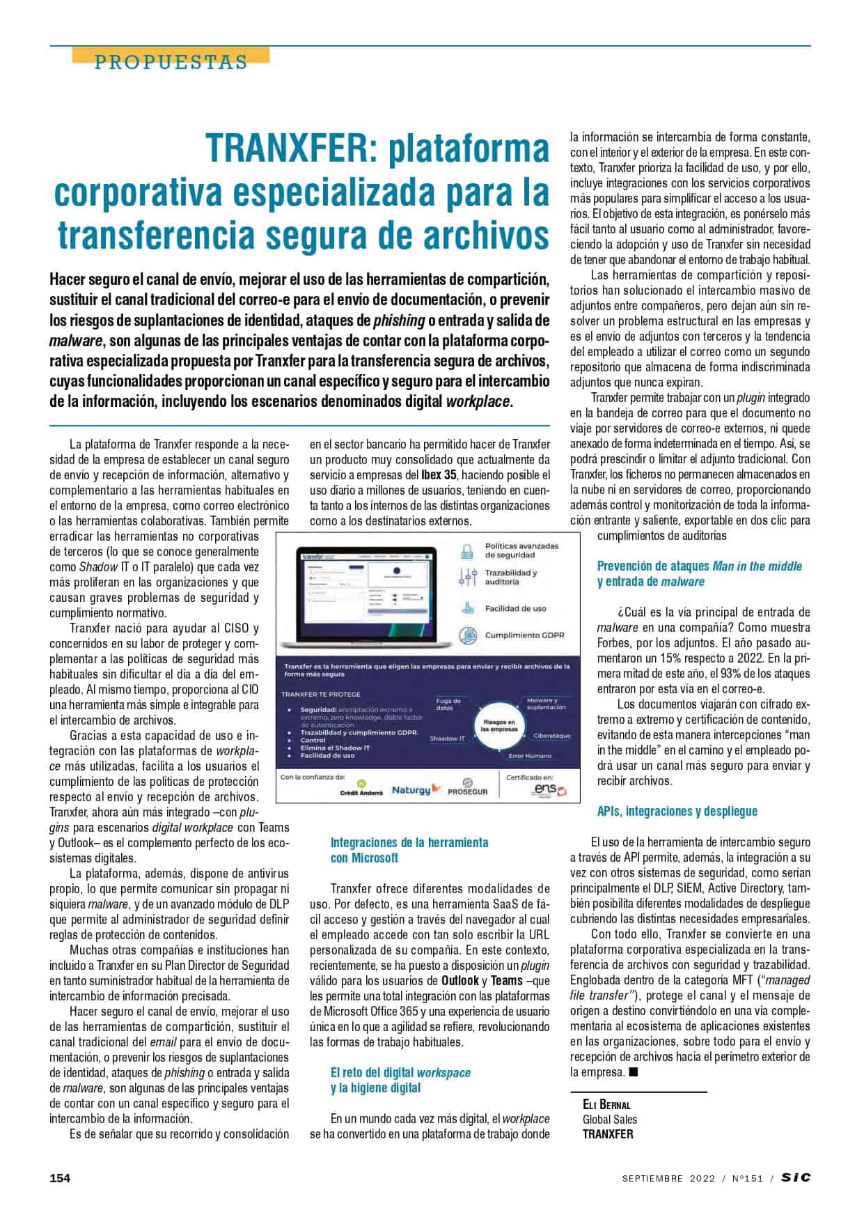Nueva aparición de Tranxfer en la edición 151 de la revista SIC, una revista especializada en ciberseguridad, que este año ha celebrado su 20 aniversario. Podéis leer la edición entera aquí.