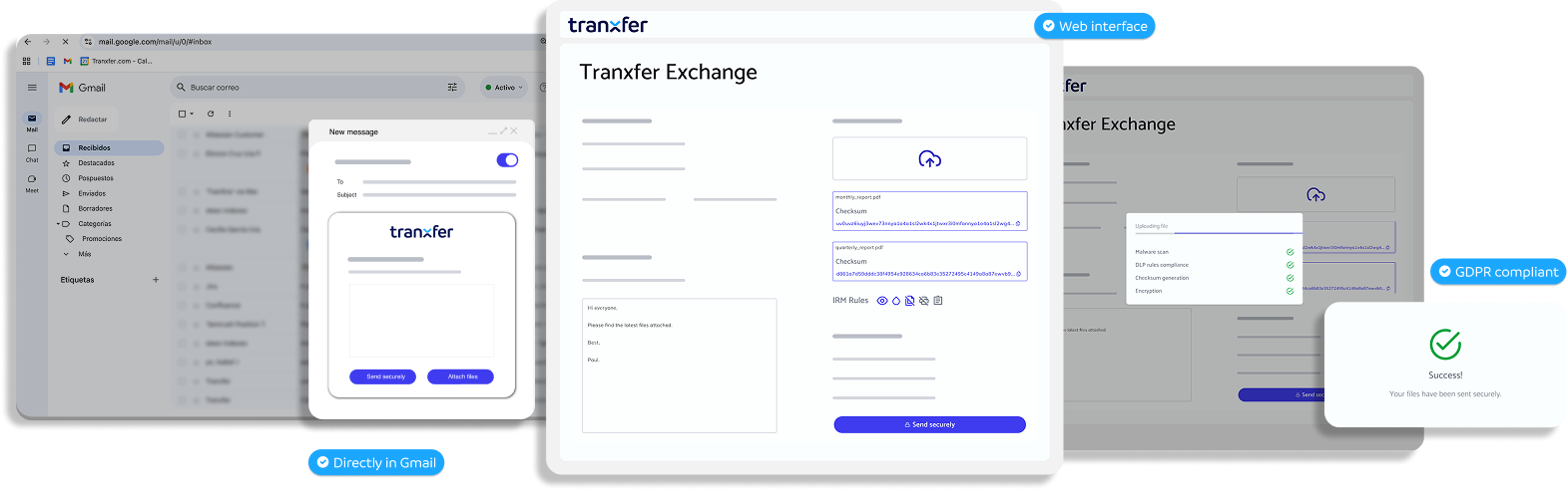 Transferencias de hasta 100 GB sin ocupar espacio en el correo, desde Outlook, Gmail o Teams.