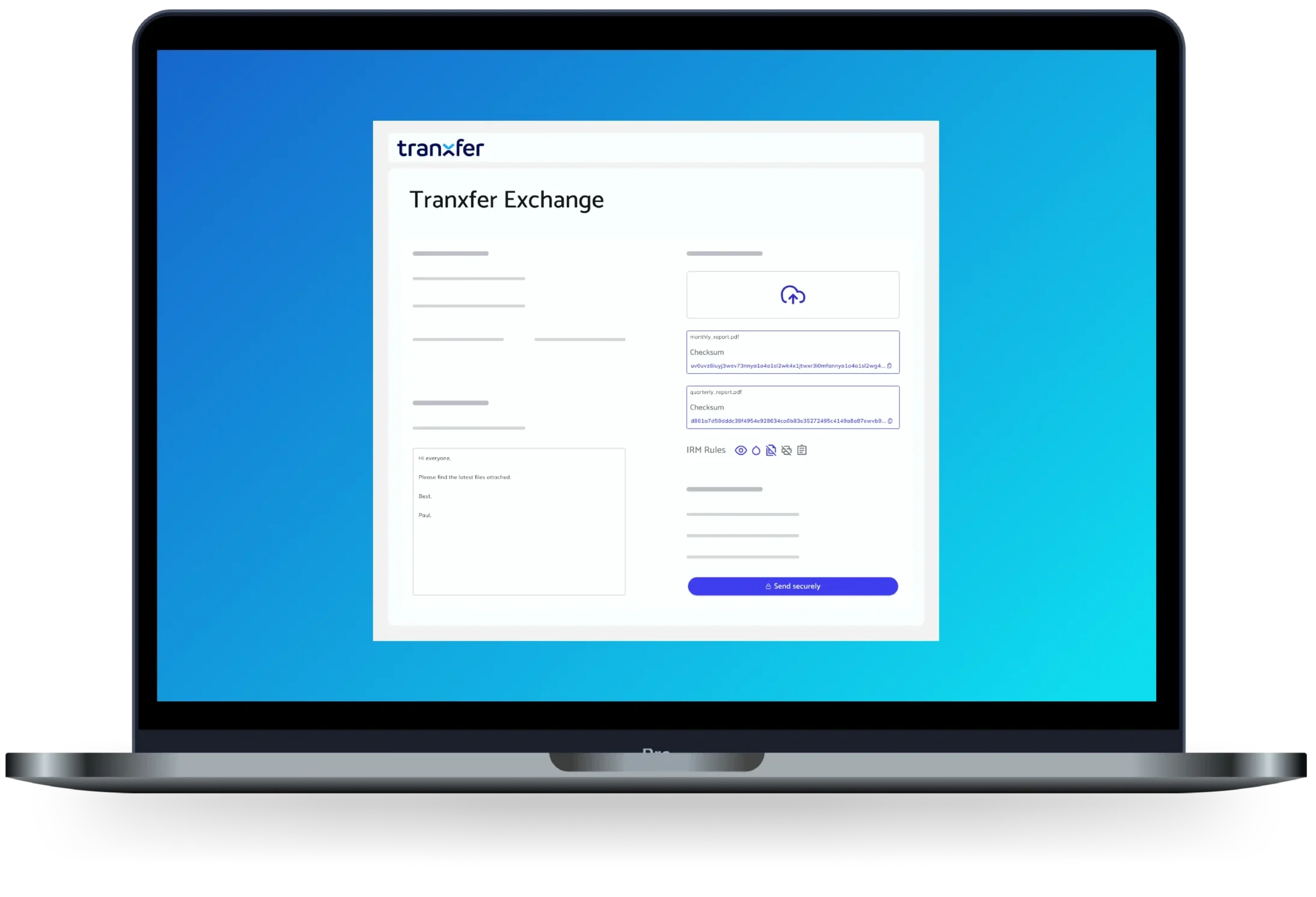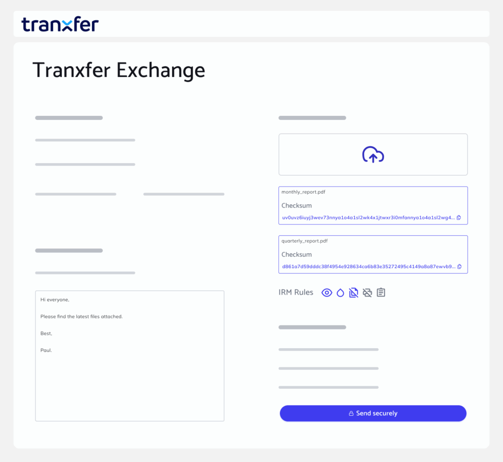 Sustituye WeTransfer, Drives y FTPs inseguros. Canal corporativo autorizado y auditado.