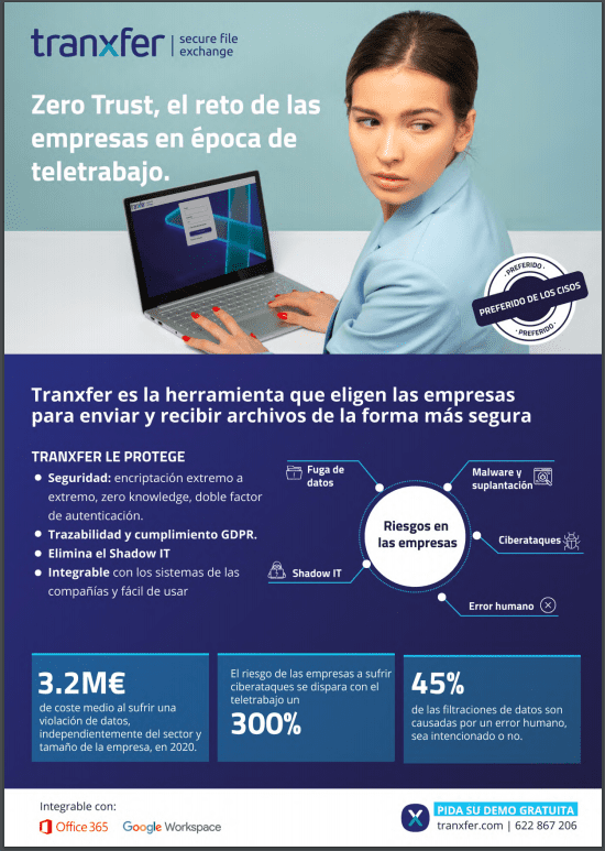 Esta start-up española quiere ser referente global en 2022 en el envío seguro de archivos Tranxfer ha desarrollado una solución B2B para que los empleados de una empresa puedan enviarse archivos e información confidencial mediante un canal cifrado. Miguel Planas, impulsor de la plataforma, confía en que su solución se convierta en un referente global […]